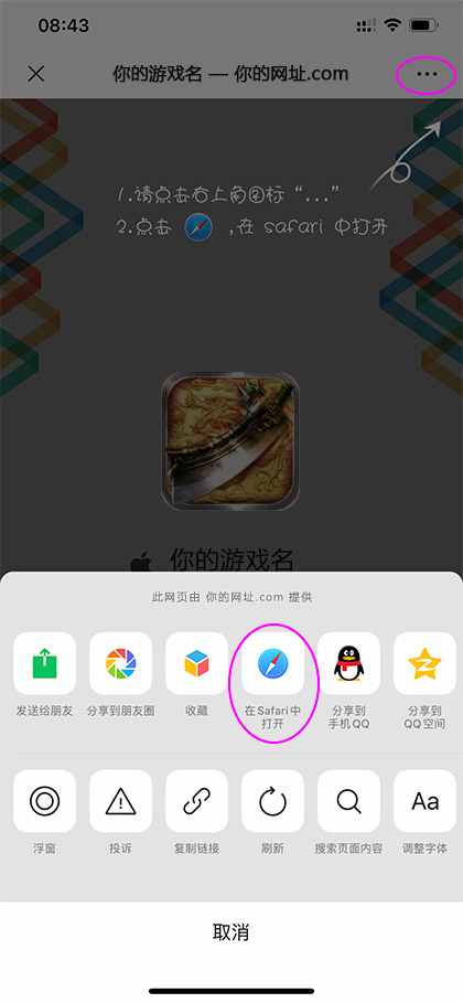 第一步、点击右上角“…” ,选择在 Safari中打开,如图: