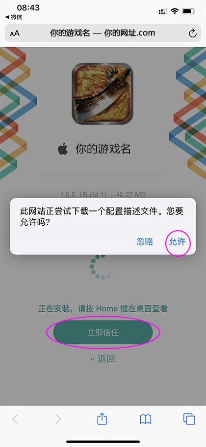 第三步、点击立即信任,在信任的提示中,选择“允许”,如图: