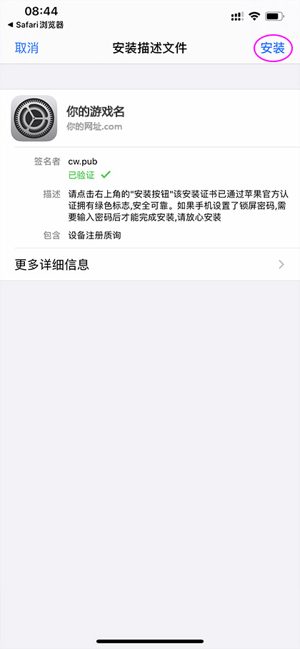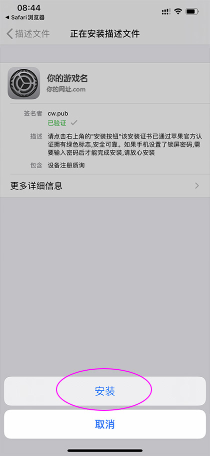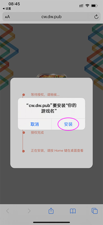 第八步、在"cw.dw.pub"要安装这个游戏,选择“安装”,如图: